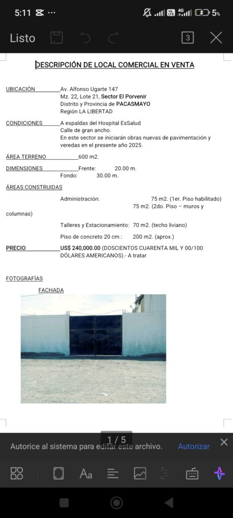 Local comercial a espaldas de EsSalud. Calle de gran ancho. Oportunidad única.
